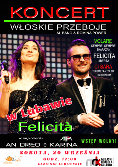 Koncert „Włoskie Przeboje” w Lubawie 🎶🇮🇹 Mamy ogromną przyjemność zaprosić Państwa na wyjątkowe wydarzenie muzyczne…