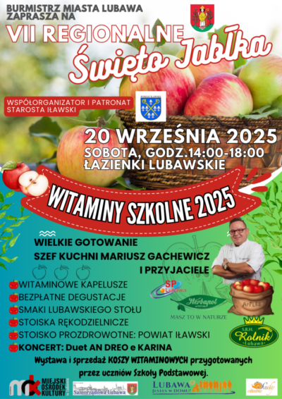 VII Regionalne Święto Jabłka i Witaminy Szkolne 2025 w Lubawie Już 20 września (sobota) wspólnie…