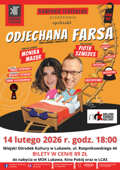 Walentynki na wesoło w Lubawie! „Odjechana farsa” to najbardziej nieprzewidywalne, zwariowane i absurdalnie zabawne dwie…