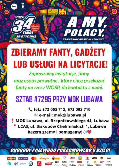 Siema Lubawa! Już niedługo 34. Finał WOŚP i jak co roku zbieramy fanty, gadżety oraz…